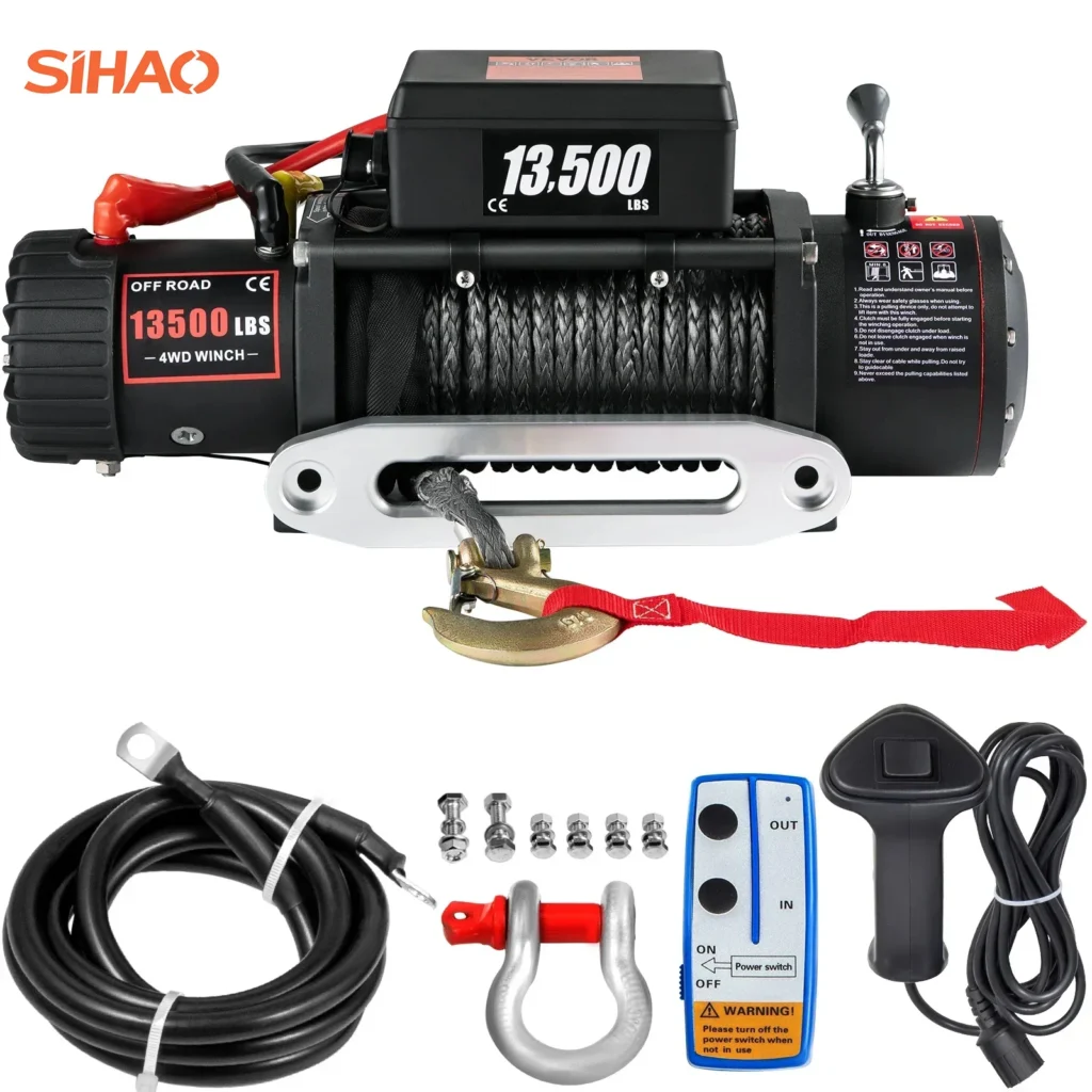 Sihao 13500LBS Electric Truck Winch 12vElectric Winch ATV Synthetic Rope with Remote Control forTowing SUV Car Trailer ATV Truck